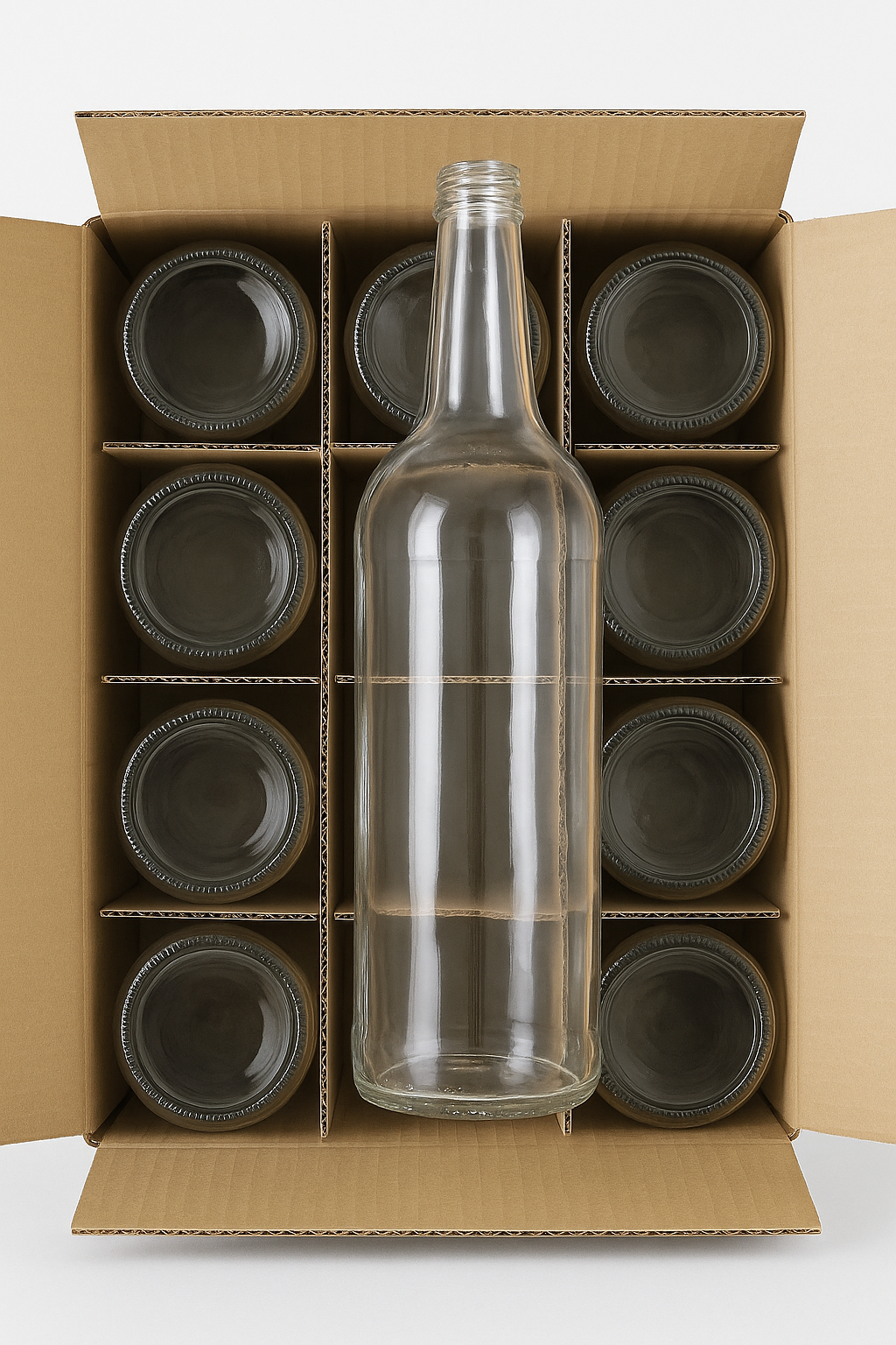 750 ml Glass Bottle – Sold in Cases of 12 – Assorted Cap Colors Available