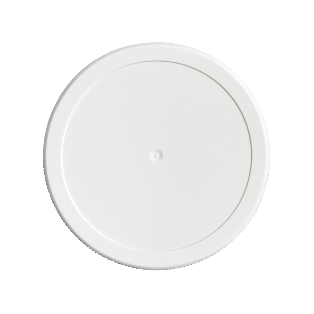 White screw-on cap for 1-gallon containers, ideal for sealing sofrito, marinades, or bulk sauces. Fits wide-mouth plastic gallon bottles.
