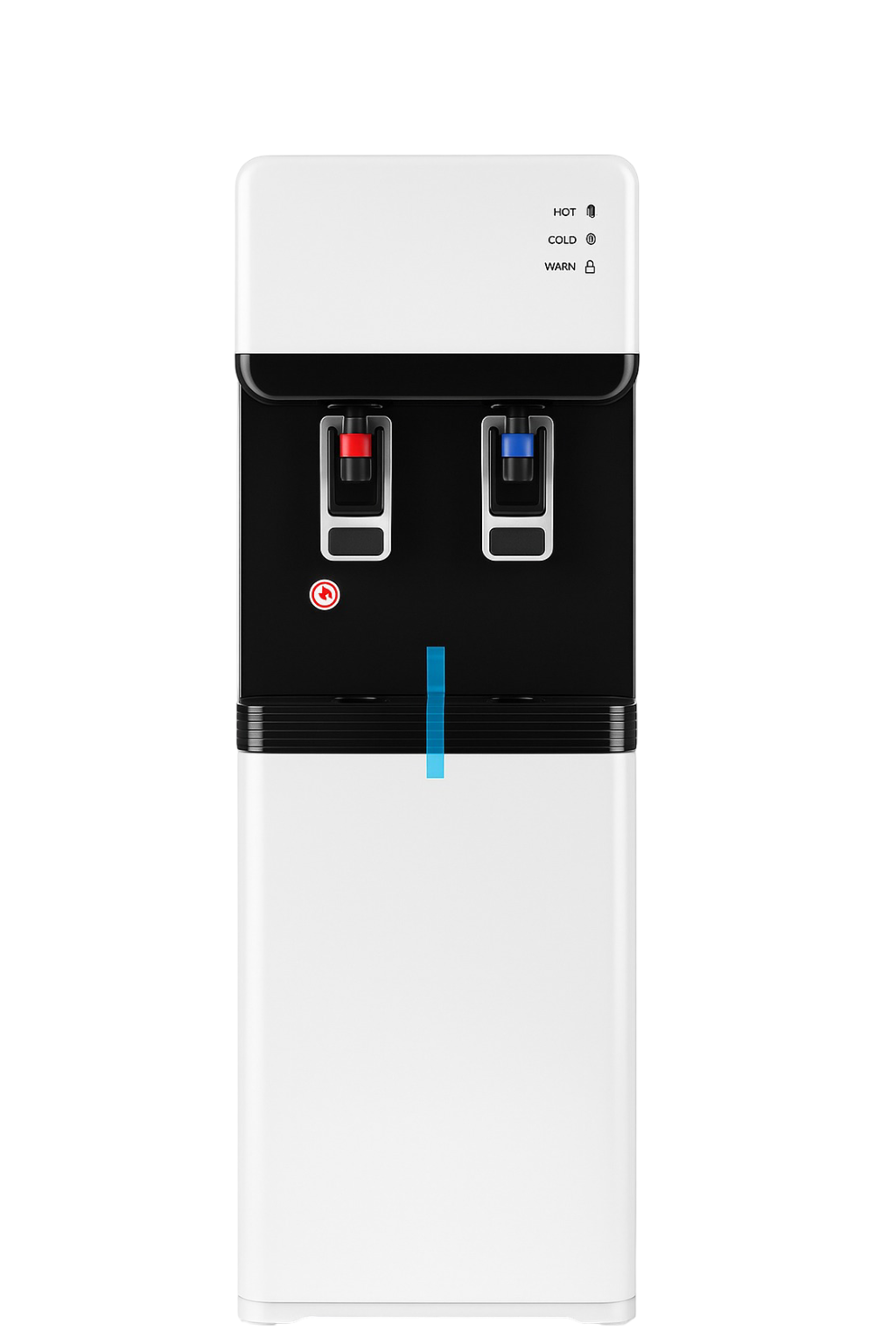 Modern electric water dispenser available in a range of colors. Designed for top-loading water jugs. Offers both cold and hot water options, perfect for office, home, or business use. Includes a 1-year in-store warranty.